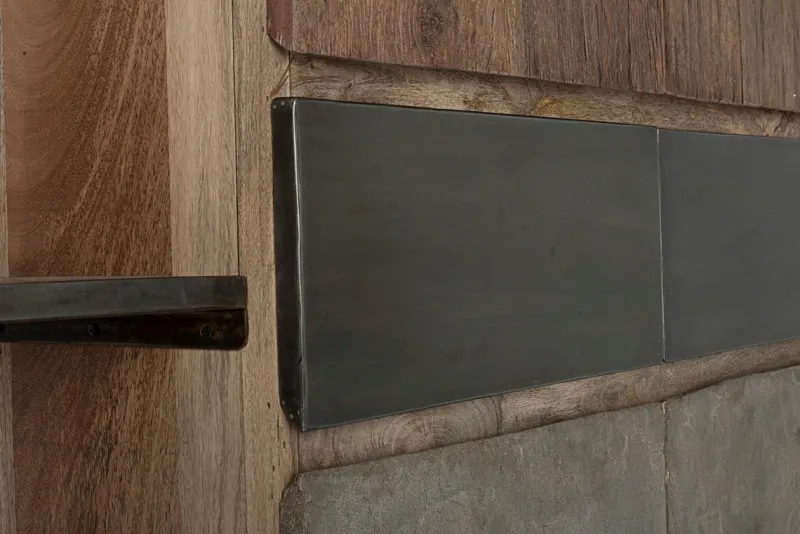 STRUTTURA IN LEGNO MANGO ED ACCIAIO, SCHIENALE IN COMPENSATO. FRONTALE ANTE E CASSETTI IN LEGNO RICICLATO O LAMINA DI ACCIAIO O FINITURA IN FIBRA DI CEMENTO. FINITURA ACRILICA PROTETTIVA. PIEDINI REGOLABILI. IL PRODOTTO IN LEGNO RICICLATO È CARATTERIZZATO DALLA PRESENZA DI TASSELLI IN LEGNO DI DIVERSE SPECIE E COLORE. EVENTUALI FESSURE, CREPE O IMPERFEZIONI, CHE POSSONO