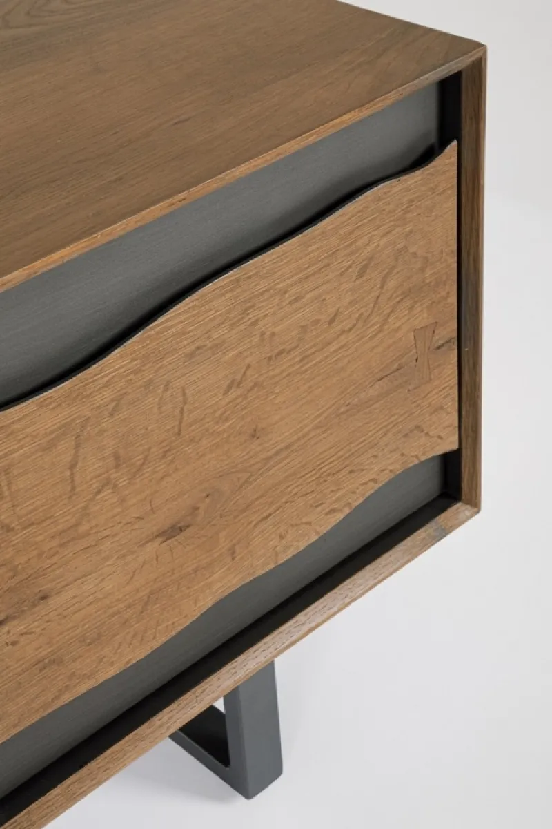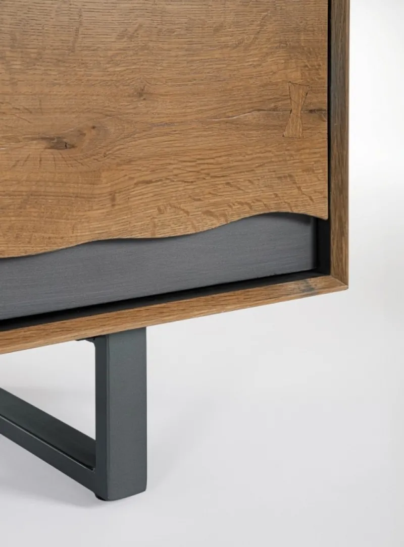 MDF IMPIALLACCIATO ROVERE. FINITURA NATURALE CON VERNICE A BASE D’ACQUA. VANO ANTE COMPRENSIVO DI MENSOLA. INTERNO ANTE DI COLORE ANTRACITE CON CHIUSURA AMMORTIZZATA IN ACCIAIO. GAMBE IN ACCIAIO VERNICIATE A POLVERE EPOSSIDICA. GAMBE DA ASSEMBLARE.