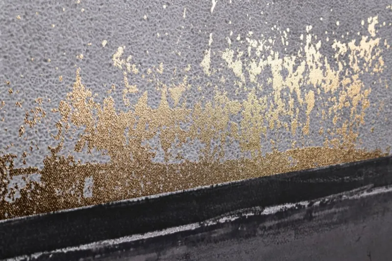 STAMPA SU TELA CON APPLICAZIONI AD OLIO E FOGLI DORATI, MDF.