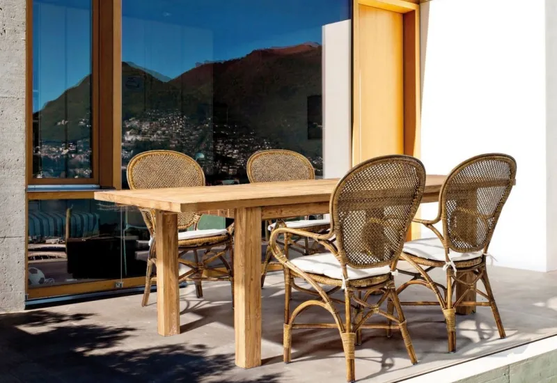 RATTAN, COLORATO ED ANTICATO. RIFINITURA CON VERNICE MELAMINICA. CUSCINO CON TESSUTO IN COTONE. SI RACCOMANDA DI NON ESPORRE IL MOBILE ALLA LUCE DIRETTA DEL SOLE ED ALLE INTEMPERIE. IMBALLO SENZA CARTONE.