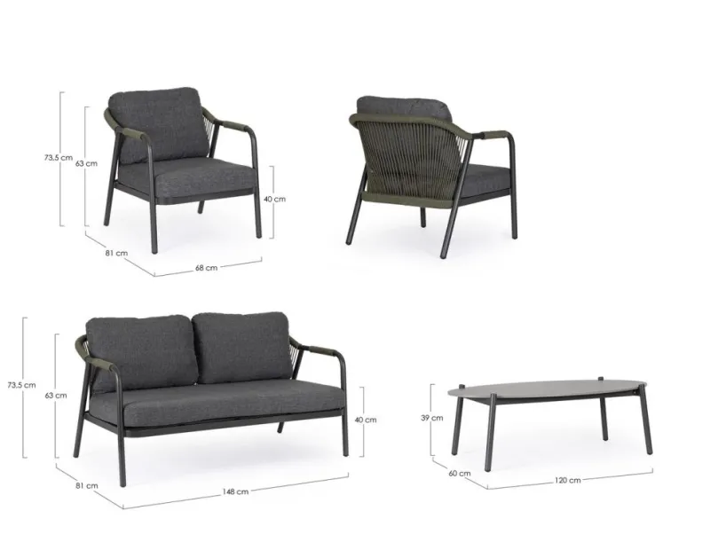 New Bizzotto SET4 SALOTTO C-C MIRAVET ANT/VERDE
