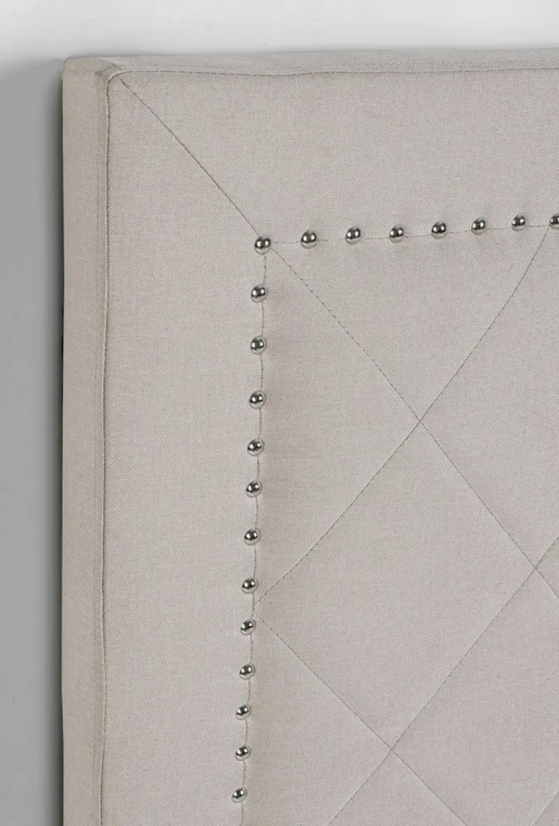 STRUTTURA IN COMPENSATO. RIVESTIMENTO NON SFODERABILE IN POLIESTERE CON APPLICAZIONE DI BORCHIE IN METALLO. IMBOTTITURA IN SCHIUMA POLIURETANICA. PIEDINI IN LEGNO DI PINO.