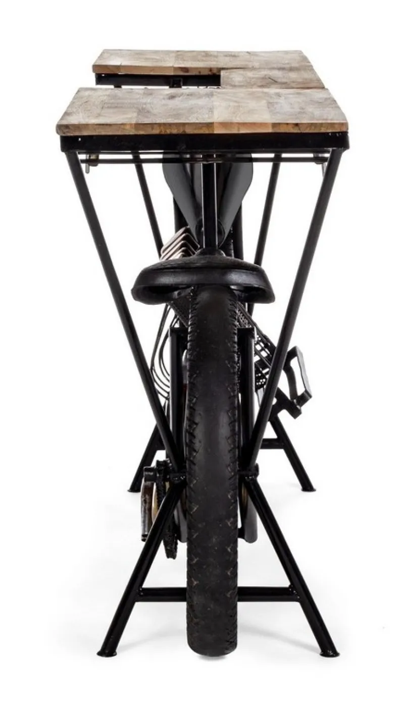 STRUTTURA IN ACCIAIO. PIANO IN LEGNO DI MANGO. COMPRENSIVO DI PORTABOTTIGLIE E PORTABICCHIERI. TRATTANDOSI DI PRODUZIONE ARTIGIANALE OGNI MODELLO PUO’ VARIARE IN PICCOLI PARTICOLARI COSTRUTTIVI. EVENTUALI PICCOLE CREPE O SPACCATURE SONO DA RITENERSI CARATTERISTICHE PROPRIE AL NATURALE LAVORO DI RECUPERO.