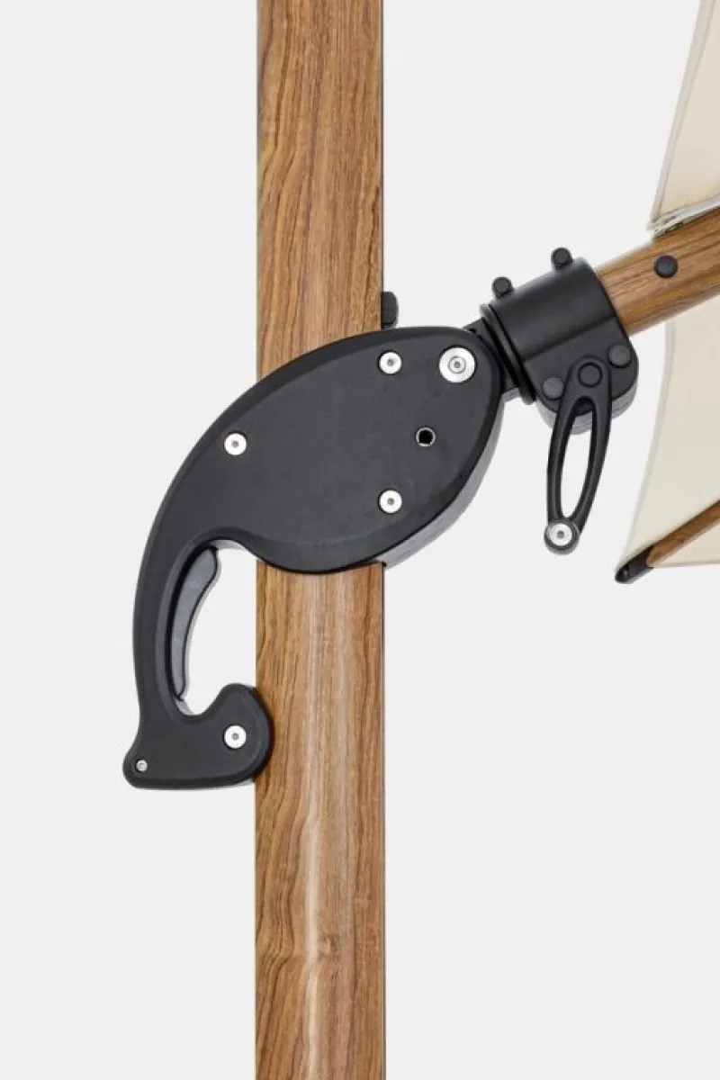STRUTTURA IN ALLUMINIO VERNICIATA A POLVERE (POLIESTERE) EFFETTO LEGNO. PALO 90X60MM. 8 STECCHE 25X17MM. TELO BEIGE IN POLIESTERE 250GR/M2 CON RIVESTIMENTO IN PA (POLIAMMIDE) CON CAMINO ANTIVENTO. BASE A CROCE IN ACCIAIO. PALO GIREVOLE 360° CON PEDALINA. INCLINAZIONE VERTICALE CON IMPUGNATURA A 6 POSIZIONI. DOTATO DI SISTEMA PER INCLINAZIONE OMBRELLO DESTRA-SINISTRA. COMPRENSIVO DI