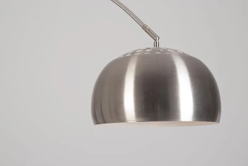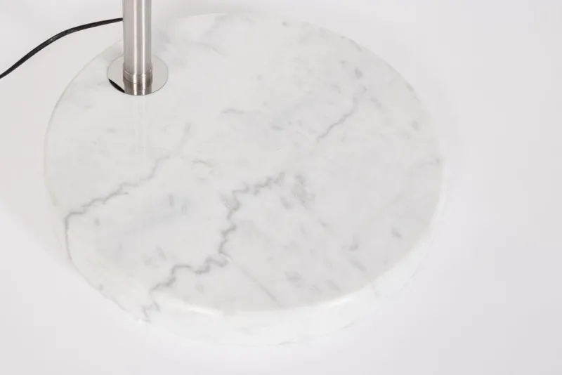 STRUTTURA IN METALLO FINITURA NICHEL LUCIDO. PARALUME IN METALLO FINITURA NICHEL LUCIDO, DIAM. 32 CM. BASE IN MARMO BIANCO, DIAM. 45 CM. LAMP: E27 MAX 60W, E27 11W COMP. FLUOR. INTEGR. RISP. EN., E27 42W ALOG. RISP. EN. LAMPADINA NON INCLUSA. LUNGHEZZA CAVO NERO: 1,8 MT. DISTANZA TRA LAMPADA E INTERRUTTORE: 100 CM. IP20. DA ASSEMBLARE.