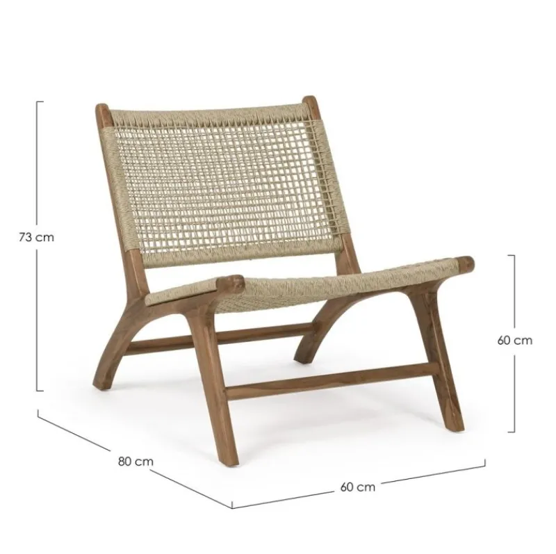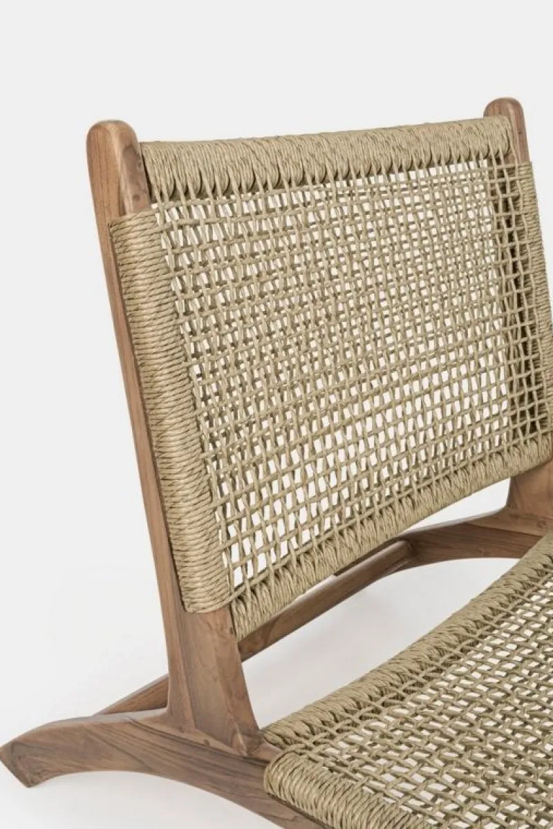 STRUTTURA IN LEGNO TEAK, SEDUTA E SCHIENALE CON INTRECCIO IN FIBRA SINTETICA (VIRO). FINITURA CON VERNICE A BASE D’ACQUA. SI RACCOMANDA DI NON ESPORRE L’ARTICOLO ALLA LUCE DIRETTA DEL SOLE ED ALLE INTEMPERIE. IMBALLO SENZA CARTONE.