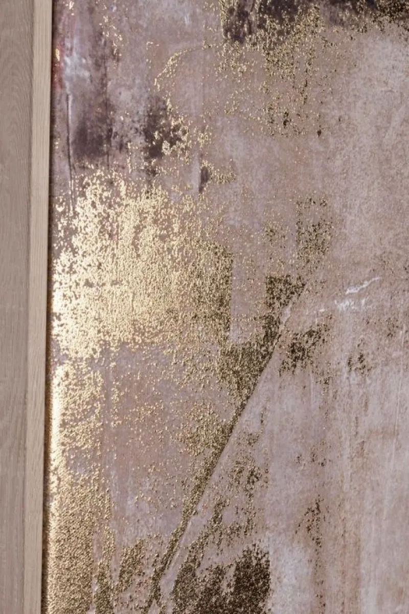 STAMPA SU TELA CON APPLICAZIONI AD OLIO E FOGLI DORATI, MDF.