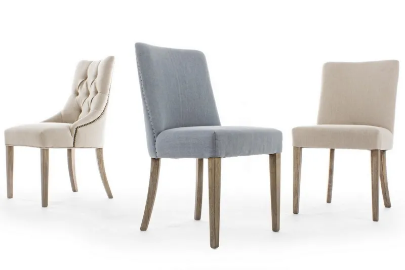 STRUTTURA IN LEGNO DI QUERCIA, RIVESTIMENTO IN LINO. SCHIENALE CON APPLICAZIONE DI BORCHIE IN METALLO. DENSITA’ IMBOTTITURA IN SCHIUMA POLIURETANICA SEDUTA 30KG/M3, SCHIENALE 25KG/M3.