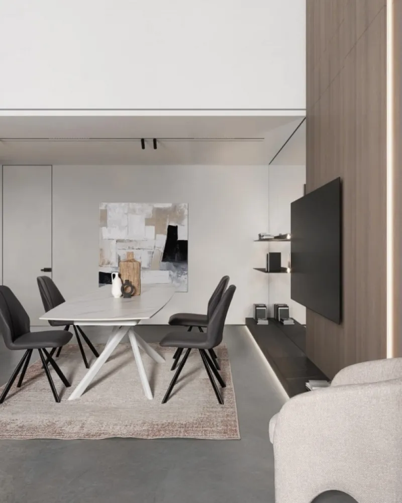 BASE IN ACCIAIO VERNICIATO A POLVERE EPOSSIDICA. PIANO IN GRES PORCELLANATO CON EFFETTO MARMO BIANCO OPACO. DA ASSEMBLARE.