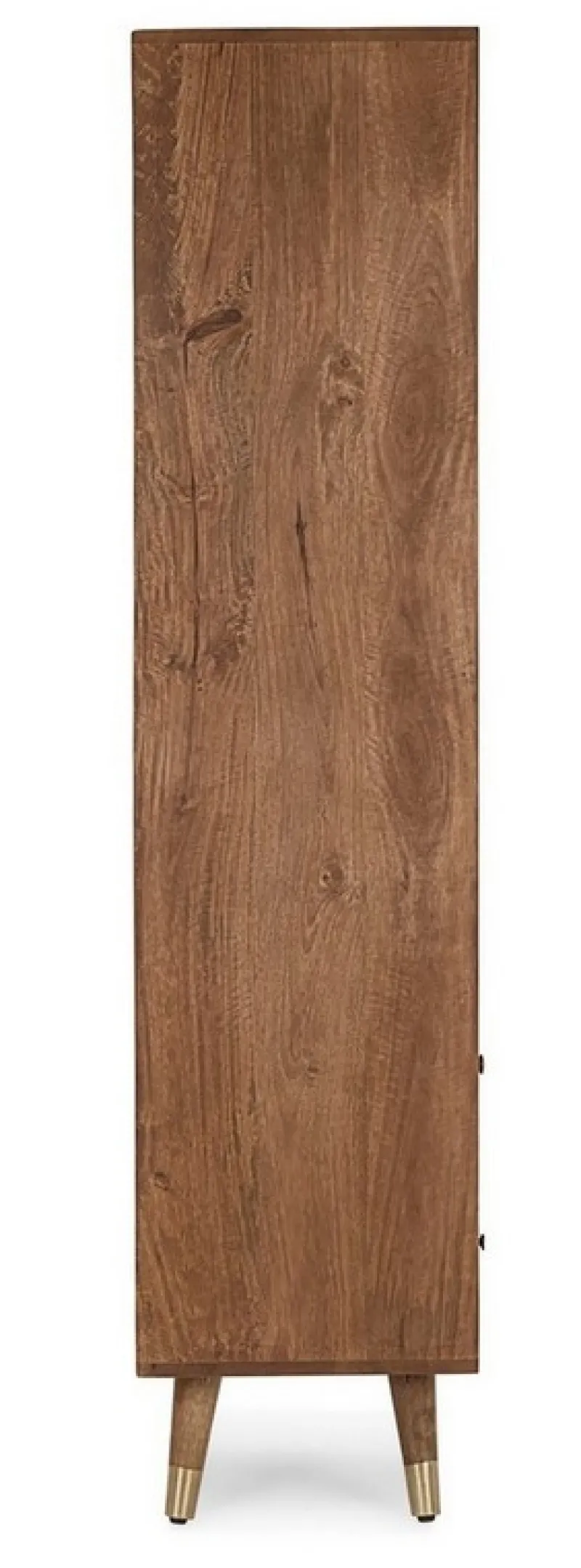 STRUTTURA IN LEGNO DI MANGO, SCHIENALE IN MDF. FRONTALE ANTE IN LEGNO RICICLATO MANGO ED ACACIA. FINITURA CON VERNICE A BASE D’ACQUA. MANIGLIE IN ACCIAIO. GAMBE DA ASSEMBLARE.