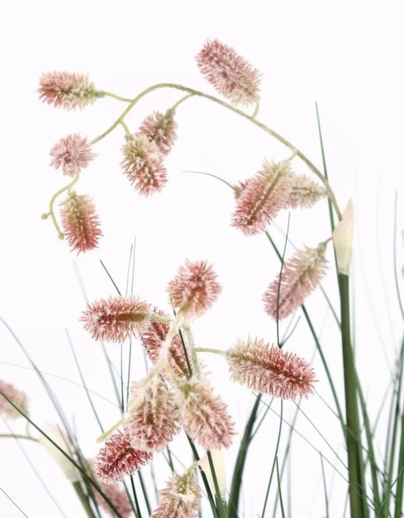 FIORE IN POLIETILENE, STELO IN METALLO E PVC, ERBA IN PVC, VASO IN PLASTICA, CONTENUTO VASO IN CEMENTO PER GARANTIRE STABILITA’