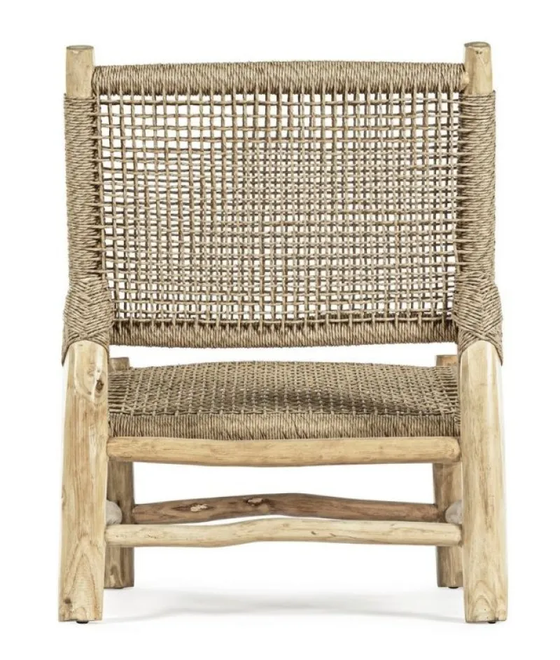 STRUTTURA IN RAMI DI TEAK, SEDUTA E SCHIENALE CON INTRECCIO IN FIBRA SINTETICA (VIRO). SI RACCOMANDA DI NON ESPORRE L’ARTICOLO ALLA LUCE DIRETTA DEL SOLE ED ALLE INTEMPERIE. LE FORME ORIGINALI CREATE DAL LEGNO SONO SOLO INDICATIVE, TUTTI I PRODOTTI SARANNO DIVERSI L’UNO DALL’ALTRO. FESSURAZIONI E PICCOLE CREPE NELLA STRUTTURA SONO DA RITENERSI CONDIZIONI NATURALI DEL