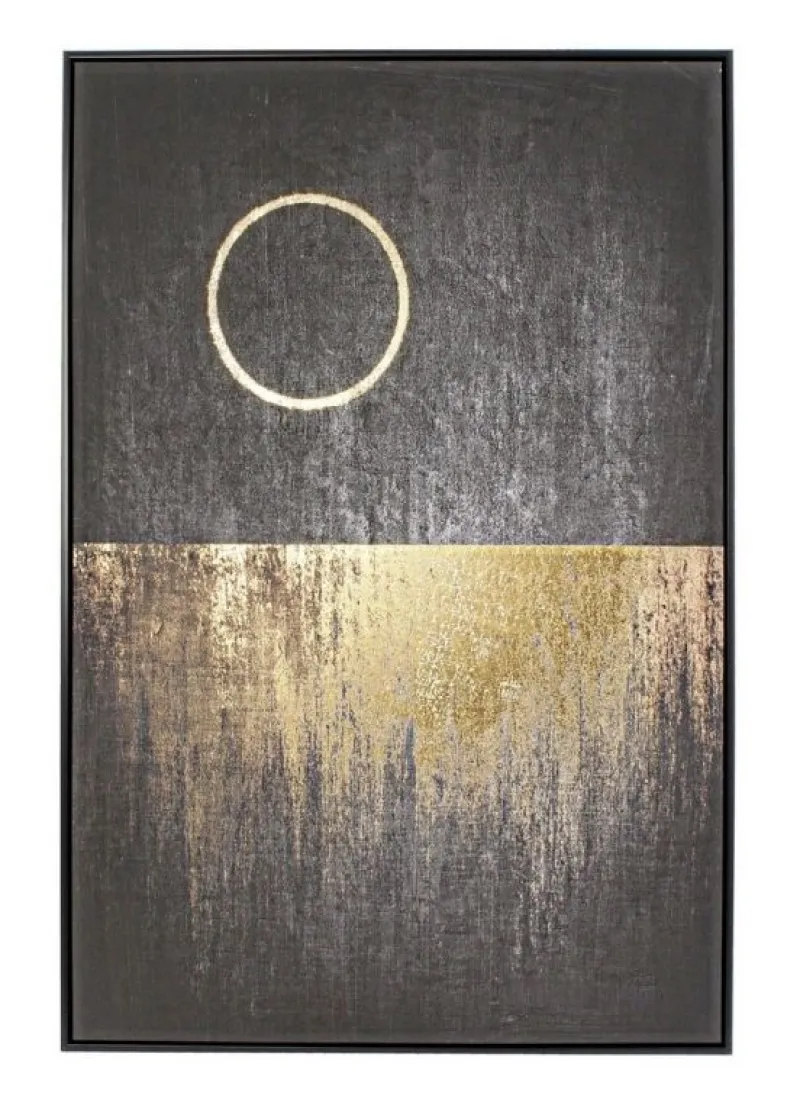 STAMPA SU TELA CON APPLICAZIONI FOGLI DORATI, MDF.