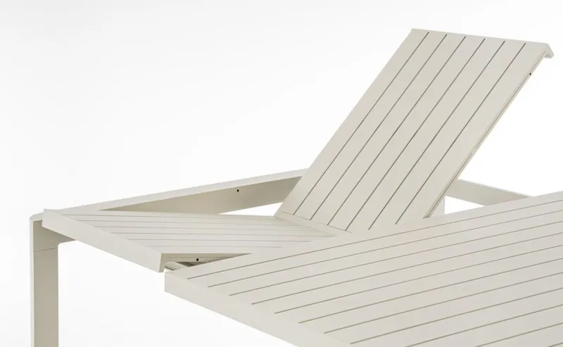 STRUTTURA IN ALLUMINIO, VERNICIATO A POLVERE (POLIESTERE). ALLUNGABILE CON APERTURA TELESCOPICA. VITERIA IN ACCIAIO INOSSIDABILE. GAMBE DA ASSEMBLARE.