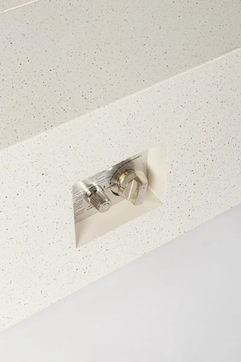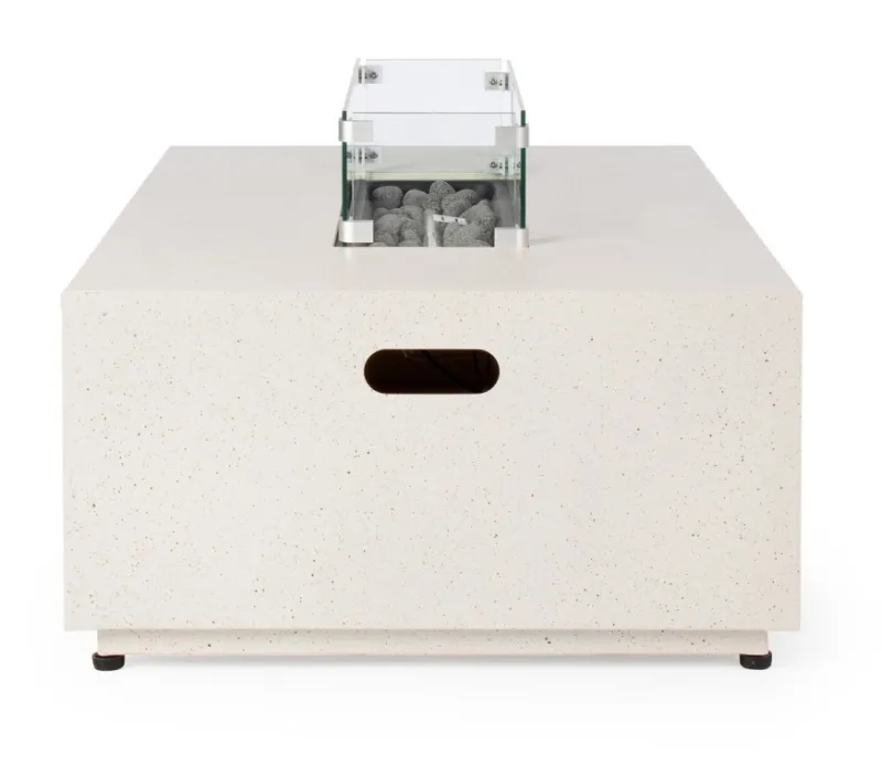 STRUTTURA IN ACCIAIO VERNICIATO (SPESSORE 0,8 MM). PARAVENTO PER CAMINO IN VETRO (SPESSORE 5 MM), VETRO REMOVIBILE. MISURE VETRO 55,8 X 15,7 X 14 CM. BRUCIATORE: Ø38 CM. PROVVISTO DI COPERCHIO IN ACCIAIO VERNICIATO PER COPRIRE L’ARTICOLO QUANDO NON E’ IN USO. COMPLETO DI SASSI DECORATIVI IN ROCCIA LAVICA COLORE GRIGIO SCURO. PROVVISTO DI COPERTURA IN TELO NERO PER COPRIRE