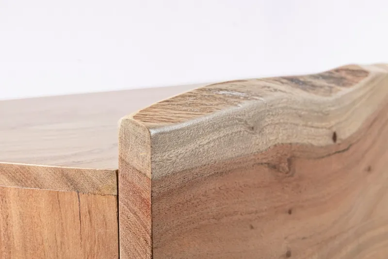 LEGNO DI ACACIA. FINITURA A BASE DI VERNICE POLIURETANICA. FRONTALE CASSETTO CON BORDI IRREGOLARI (EFFETTO LEGNO VIVO). ESSENDO LAVORATO A MANO, LE FORME E LE MISURE DEL LEGNO SONO SOLO INDICATIVE. TUTTI I PRODOTTI SARANNO DIVERSI L’UNO DALL’ALTRO.