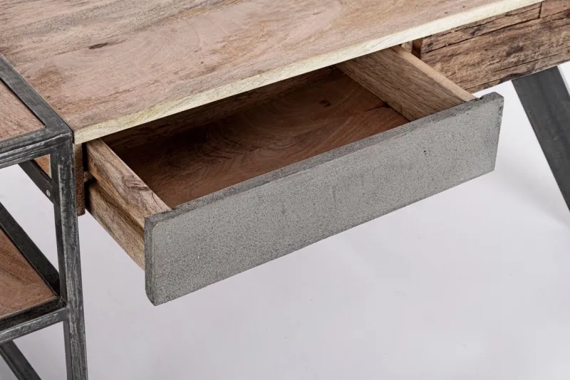 GAMBE IN ACCIAIO CON PIEDINI REGOLABILI, PIANO IN LEGNO MANGO. FRONTALE CASSETTI IN LEGNO RICICLATO O LAMINA DI ACCIAIO O FINITURA IN FIBRA DI CEMENTO. FINITURA ACRILICA PROTETTIVA. IL PRODOTTO IN LEGNO RICICLATO È CARATTERIZZATO DALLA PRESENZA DI TASSELLI IN LEGNO DI DIVERSE SPECIE E COLORE. EVENTUALI FESSURE, CREPE O IMPERFEZIONI, CHE POSSONO GENERARSI ANCHE NEL CORSO DEL TEMPO,