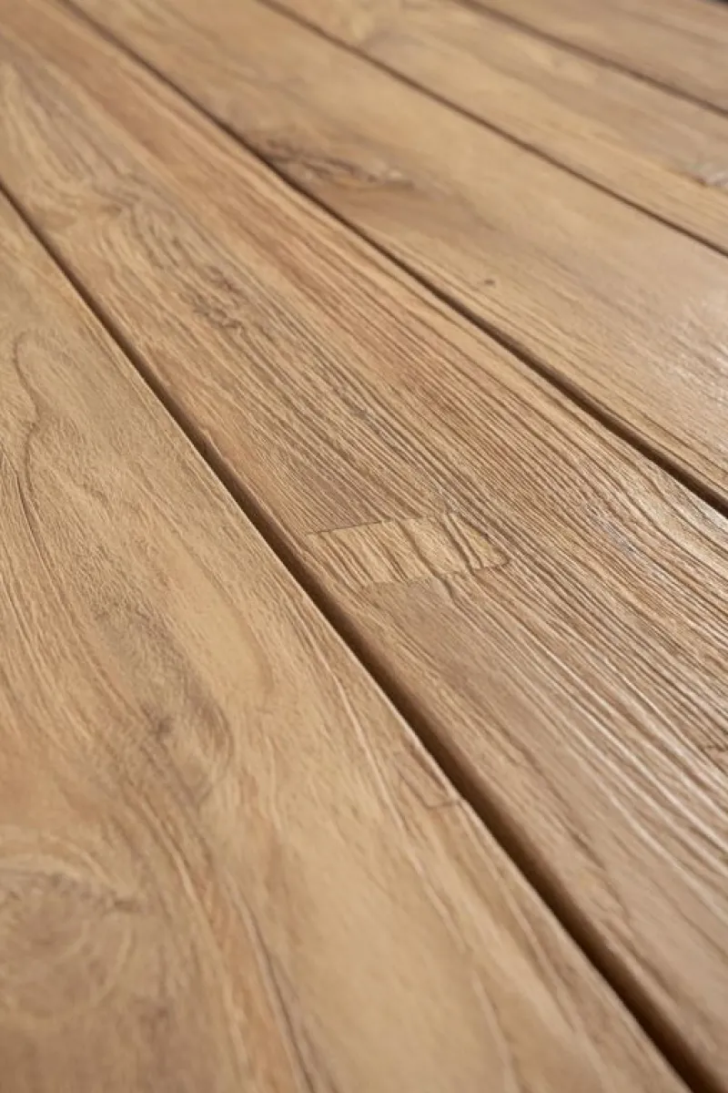PIANO E GAMBE IN LEGNO TEAK RICICLATO – SVLK (LEGNO CERTIFICATO PROVENIENTE DA FORESTE SOSTENIBILI). FINITURA NATURALE SPAZZOLATA. VITERIA IN ACCIAIO INOSSIDABILE. IL PRODOTTO IN LEGNO RICICLATO È CARATTERIZZATO DALLA PRESENZA DI TASSELLI IN LEGNO DI DIVERSE SPECIE E COLORE. EVENTUALI FESSURE, CREPE O IMPERFEZIONI, CHE POSSONO